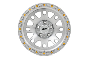 Custom RC Center Cap: Each wheel includes a matching machined Rough Country center cap with bold black RC lettering for a clean branded touch.