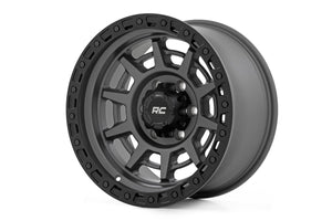 Stand-out Look. Rough Country 85 Series Gun Metal Wheels are built for maximum durability and strength with high-performance styling that ensures that it's ready to withstand anything on the street. Opting to upgrade your stock wheels will provide you with a rugged appearance and outstanding performance that you expect from Rough Country products. The 85 Series Gun Gray Metal Wheel is a must for anybody who wants to add a bold new look to make your ride stand out from the crowd.\Superior Design. Our Series 85 Gunmetal Gray Wheels feature a high-quality gunmetal finish with matte black simulated bead lock and one-piece aluminum construction that delivers a strong, durable wheel. These gunmetal gray color wheels boast an aggressive design and include a Rough Country black center cap, so you can tackle the road in style. Rough Country's Gunmetal Gray/Black Wheels come with a 1-year finish and Limited Lifetime Structural Warranty.