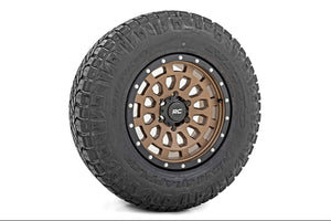 Stand-out Look. Rough Country 87 Series Bronze Wheels are built for maximum durability and strength with high-performance styling that ensures that it's ready to withstand anything on the street. Opting to upgrade your stock wheels will provide you with a rugged appearance and outstanding performance that you expect from Rough Country products. The 87 Series bronze Wheel is a must for anybody who wants to add a bold new look to make your ride stand out from the crowd.\Superior Design. Our Series 87 Bronze Wheels feature a high-quality bronze finish with matte black simulated bead lock and one-piece aluminum construction that delivers a strong, durable wheel. These copper color wheels boast an aggressive design and include a Rough Country black center cap, so you can tackle the road in style. Rough Country's Copper Wheels come with a 1-year finish and Limited Lifetime Structural Warranty.