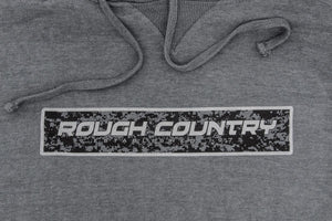 Stay warm on a cold trail with Rough CountryΓÇÖs comfortable pullover hoodie with ΓÇ£RCΓÇ¥ logo. This stylish, yet durable hoodie features a heather gray design with wide-mouthed front pockets making it both practical and good-looking. Each one features a "peached" finish for a soft and comfortable feel. This hoodie features a threaded drawstring and full-sized pullover hood with a ΓÇ£Rough CountryΓÇ¥ digital camo screenprinted logo. This 60% Cotton / 40% Poly hoodie is sure to always be a go-to favorite for a good fit and for fighting cold weather.