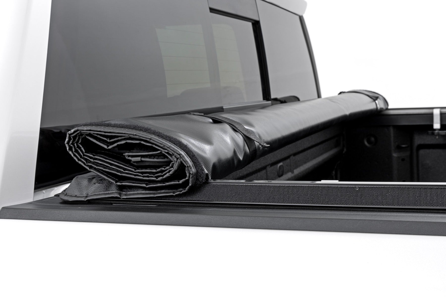 Superior Protection. Rough Country's Soft Roll-Up Bed Cover keeps the contents of your bed clean and dry while allowing maximum bed access when you need it. Made with a durable, leather-grain fabric, this easy-to-install bed cover is designed to withstand the elements, featuring tight front and rear seals to keep water, dust, and dirt at bay.\Low Profile Design. Sitting only 3/4" of an inch above the truck bed this innovative design doesn't distract your truck's overall appearance. Featuring a quick-release system, this cover can easily be removed allowing for 100% bed access.\Installation. With an estimated time frame of twenty minutes for installation, covering your cargo takes no time! Simply install the supplied bracket system to your factory bed rail, and secure the cover to the railing and you're officially covered!\Limited Lifetime Warranty. Rough Country's Soft Roll-Up Bed Cover is backed with a limited lifetime replacement warranty towards manufacturer defects. As such, the product is protected from structural and workmanship damage after the date of purchase. With our industry-leading warranty give yourself peace of mind when using Rough Country's Suspension products!