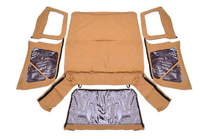 Upgrade Your Style. You love your Jeep Wrangler. And for good reason. It's a vehicle that embodies freedom, adventure, and the off-road lifestyle. But sometimes, you want to create something different, something more exciting. With our weather-resistant soft top replacement, we're making it easier than ever to customize your ride. Now you can upgrade your style while maintaining the rugged durability you depend on. Rough Country‘s Soft Top Cover is custom-designed to replace your TJ factory top with ease. It's built to withstand even the harshest elements while providing lasting durability and unique styling.\Quality Construction. If you want your Jeep to last, you need to protect it! Our top covers feature a premium fabric that withstands the most extreme conditions. You can rely on our premium fit and construction to keep your Jeep looking sharp and ready to go. Our UV and mildew resistant vinyl coated polyester cotton material make this cover heat and water-resistant, with reinforced stitching with marine-grade bonded polyester thread, double stitched with heat-tape sealed seams for watertight protection. When you're ready for the breeze, our DOT-approved zip-on windows can be removed easily. If you want to experience the utmost in adventure, you need a top that can stand up to even the toughest conditions.\Installation. What makes our top different? Built to factory original quality specifications, it's designed to provide a tight, wrinkle-free fit on your TJ Wrangler. Easy installation and durable all-weather fabric make this top a smart choice for the active enthusiast. With our state-of-the-art Belt Rail and Hook & Loop attachments, we've taken the guesswork out of installing Jeep tops so you can get a smooth, stable snap-on fit every time.\Limited Lifetime Replacement Warranty. Rough Country's products are backed with a limited lifetime replacement warranty towards manufacturer defects. As such, the product is protected from structural and workmanship damage after the date of purchase. With our industry-leading warranty give yourself peace of mind when using Rough Country's products!