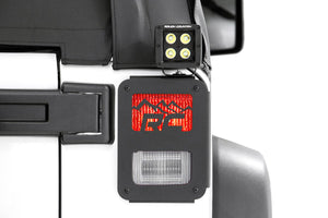 Protect your tail lights while enhancing the look of your Jeep with Rough CountryΓÇÖs JK Tail Light Covers. These sleek and stylish covers offer superior protection for your tail lights while allowing ample light to pass through when braking or reversing. The three-dimensional ΓÇ£shroudΓÇ¥ design totally envelops your tail light on all 4 sides, offering considerably more protection than simple add-on bezels found on the market. For even more functionality, Rough Country JK Tail Light Covers feature a standard-sized mounting point on the top of each cover allowing you to mount a small LED Light - like our 2-inch LED cubes - for easy and convenient rear lighting. Hook up to a trailer with ease, or reverse more confidently in off-road scenarios with this handy LED mounting position. Each solid-steel tail light cover is powdercoated black to provide aggressive good looks while withstanding the elements. Best of all, Rough CountryΓÇÖs JK Tail Light Covers feature a Lifetime Replacement Warranty!