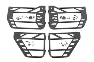 Put the wind in your hair and freedom at your fingertips with Rough CountryΓÇÖs Steel Tube Doors! These durable, steel doors give your vehicle an aggressive look while giving you increased visibility without sacrificing safety. ThereΓÇÖs little in this world that can match the feeling of riding in a Jeep with nothing between you and the world around you! Rough CountryΓÇÖs easy-to-install tubular steel doors allow you to keep your occupants safe while enjoying the open air. These durable, 1.25in diameter tube steel doors with integrated latching system keep everyone contained and comfortable for the duration of the journey. Rough CountryΓÇÖs Tube Doors feature a high-quality, black powder coat thatΓÇÖs designed to resist corrosion for a long lifespan of good looks. The simple bolt-on installation process makes them easy to install, allowing for a total transformation of your Jeep in no-time flat! Each front tube door Includes a mounting point to attach the factory mirrors.