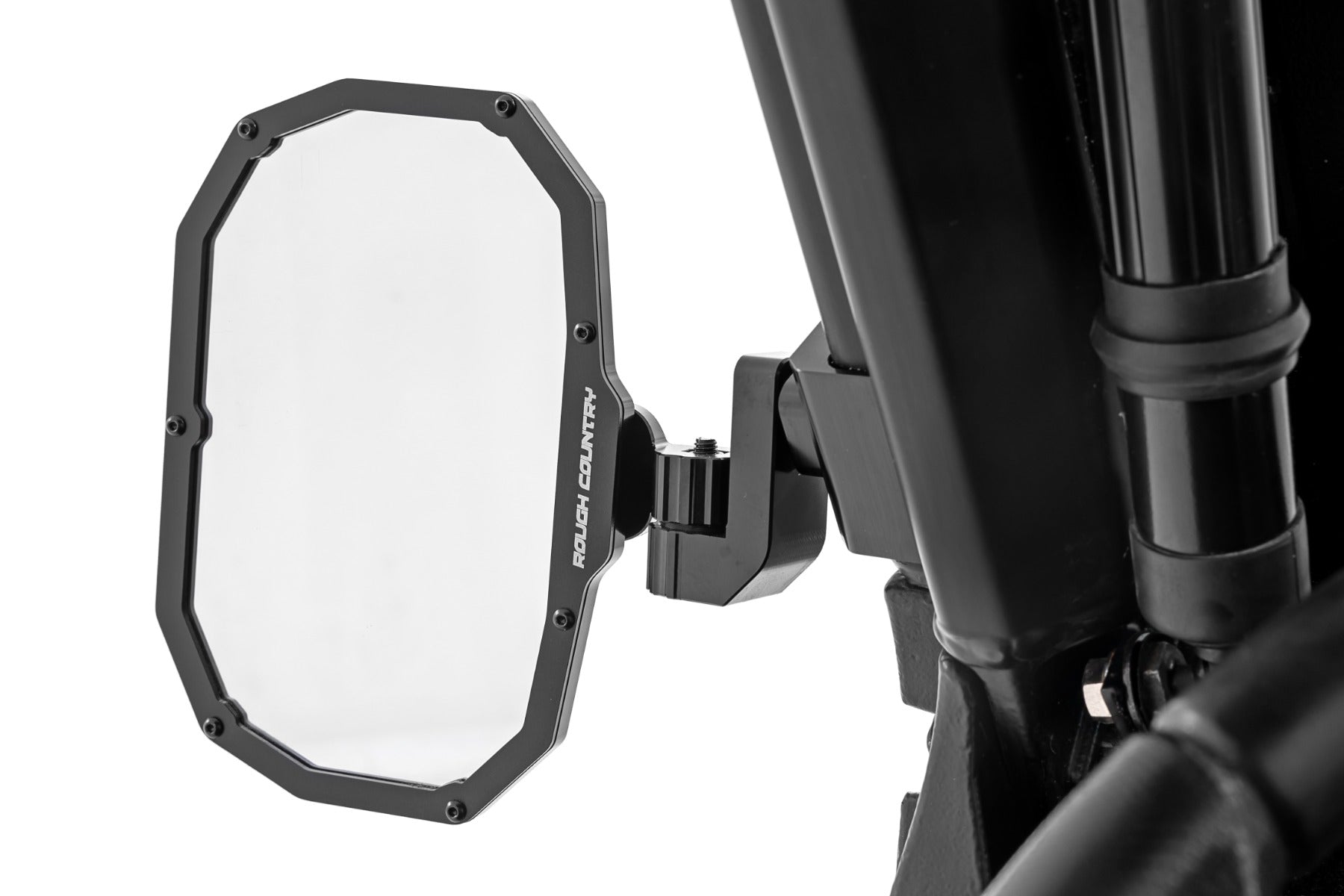 Enhanced Visibility. Equip your UTV with Rough Country's Universal Side Mirrors with LED and amber blinkers. This kit is an easy addition to your UTV's existing blinker kit to provide impressive off-road illumination.\\Superior Functionality. Each mirror features two bright white LEDs as well as an amber turn signal to tackle the trails ahead. Rough Country's Universal Side Mirrors feature a 360° swivel rotation and 120° forward and backward positioning. Boasting a durable cast 6063 aluminum housing and a shatter-resistant safety glass this must-have upgrade is designed to conquer the trails.\ \Installation. With no cutting or drilling required to install, installation couldn't be easier. With an estimated timeframe of 30 minutes this full kit can be installed at home using standard tools and can be completed efficiently and quickly!\\Limited Lifetime Replacement Warranty. Rough Country's Universal Side Mirrors is backed with a limited lifetime replacement warranty towards manufacturer defects. As such, the product is protected from structural and workmanship damage after the date of purchase. With our industry-leading warranty give yourself peace of mind when using Rough Country's Suspension products! \\