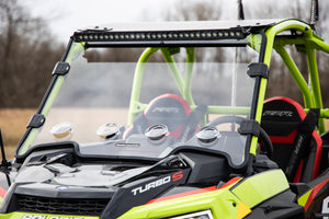 Added Protection and comfortability. Protect the occupants of your Polaris RZR from off-road hazards such as rocks, branches, and other debris with Rough Country's Scratch-Resistant Windshields. UTV Windshields offer a clear visual of the trail ahead and allow for a much more comfortable outing!\High-Quality Polycarbonate Construction. Rough Country UTV windshields are constructed from thick polycarbonate material that is precision cut for a perfect fit. The polycarbonate material provides an ideal combination of clarity, flexibility, durability that outperforms glass, acrylic, and other windshield materials.\Durable Scratch and UV Resistance. Each windshield is not only constructed from thick polycarbonate material but enhanced by a secondary AR2 hard-coating process. This process completely coats the windshield with a hardened, scratch-resistant barrier. This treatment also provides the additional benefit of UV protection.\Easy Installation. With a simple strap-on installation process, installing a Rough Country windshield couldn't be easier. Within 15 ΓÇô 30 mins you can be ready to hit the trails.\Limited-Lifetime Replacement Warranty. Rough Country's Scratch-Resistant Windshields are backed with a limited lifetime replacement warranty towards manufacturer defects. As such, the product is protected from structural and workmanship damage after the date of purchase. With our industry-leading warranty give yourself peace of mind when using Rough Country's Suspension products!