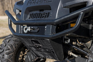 Gain peace of mind on the trail and overcome off-road obstacles with ease with Rough CountryΓÇÖs Polaris Ranger 800 XP Winch Mounting Plate. This easy-to-install kit upgrades your UTV with essential recovery capabilities for when you need it most.\Made of a durable 3/16ΓÇ¥ steel construction, this heavy-duty winch plate features dual mounting bolt patterns designed to firmly fit 3,500lb-5,000lb winches so you can choose the exact setup you require. Each late is powder-coated black to ward off the elements and provide a long lifespan of good looks and performance.\Installation is a breeze, with no drilling required! Simply bolt on this upgrade and attach your winch and youΓÇÖre ready for whatever the trail throws your way.