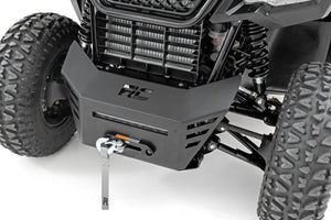 Upgrade your Honda Pioneer. Rough Country's Winch Mount is the perfect solution for off-road enthusiasts who demand superior performance and durability from their UTV. This winch mount replaces your stock front bumper and allows for the addition of a sleek 10" Slim Line LED light, perfect for shining a bright path on even the darkest of trails. And with a design specifically crafted to fit a 4500lb winch, you'll be able to tackle even the toughest of off-road challenges with ease. Say goodbye to wimpy stock bumpers and hello to the brute strength of Rough Country's Winch Mount for the Honda Pioneer 520 4WD!\Durable Construction. Crafted with durability in mind, the winch mount is made of 7-gauge material and coated with a gloss black powder finish. This ensures long-lasting protection against rust and corrosion and a sleek and stylish look. Installing the winch mount is a breeze thanks to its easy bolt-on design, which requires no cutting or drilling of your Honda Pioneer 520 4WD. Get ready to hit the trails with confidence, knowing that your winch mount is secure and built to last. Upgrade to Rough Country's Winch Mount today and take your off-road adventures to the next level.