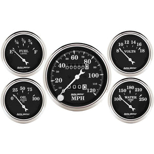 Auto Meter Gauge Kit 5 pc. 3 1/8in & 2 1/16in Mechanical Speedometer Old Tyme Black - 1708