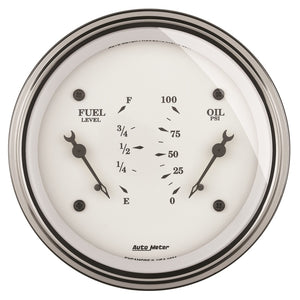 AutoMeter Gauge Dual Fuel & Oilp 3-3/8in. 240 Ohm(e) to 33 Ohm(f) & 100PSI Elec Old Tyme Wht - 1613