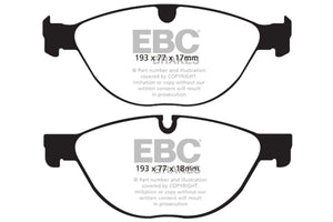 There are TWO reasons our customers love Redstuff, First because they are the lowest dust pad we have encountered by reducing dust by 60-90-percent. Plus the minimal dust you see is very easily removed with a simple sponge wash as it contains no steel fibre particles as in ALL OTHER pads. Second they brake like an alligator right from cold (as good as Original pads or better) and just get better as they heat up.This material is a Synthetic Fiber based brake compound enhanced with ceramic particles. If you have previously tried EBC redstuff (pre-ceramic compound) this material is light years ahead. It lasts longer; it brakes better and is quieter. Being a hard wearing pad, bed-in times can be as long as 1000 miles and drivers must be patient until the pad takes up the shape of their disc (brake rotor). This is a truly impressive fast road pad for repeated heavy braking.It emits far less dust than semi-metallic pads and has been proven to stop a passenger car/sedan/sport compact/hot hatch 13 metres quicker than OEM pads from 100mph/160kph. Features EBC Brake-In surface coating which conditions rotor surface and accelerates pad bed-in. Nominal friction coefficient 0.5 with approx. 50-percent dust reduction.Most EBC Red Ceramic pads are approved to ECE R90 brake safety regulation.