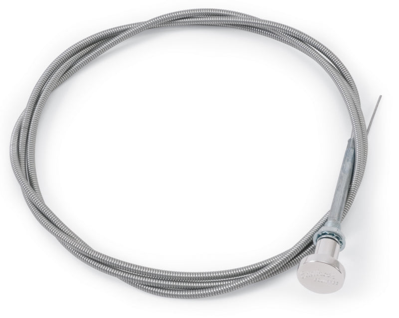 This universal push/pull cable is intended for use with Edelbrock 2 and 4 barrel carburetors equipped with a manual choke. It features a polished knob that has been engraved with the 'Edelbrock Equipped' logo. It has an overall length of 6' and is intended to be routed from the dash, through the firewall, to the customer's carburetor.