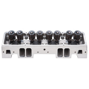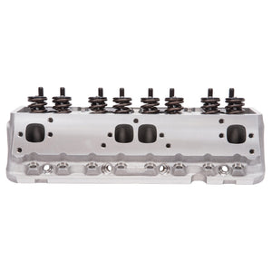 Edelbrock part #61259 Victor Jr. 23deg 220 cylinder head is designed for small-block Chevy Its 64cc combustion chamber yields around 10:1 compression ratio in a typical flat-top application and about 12.5:1 when used with some of the most common 12cc dome pistons. One of the key features of the Victor Jr. 23deg 220 cylinder head is the CNC machined chambers and bowls, which result in consistency and improved performance. They also feature angled spark plug holes and maintain the stock 23deg valve angle as well as the intake flange bolt pattern for use with 1986 and earlier intake manifolds. All of this allows this cylinder head to deliver 530-580 hp potential right-out-of-the-box, making them ideal for a budget minded engine build desiring a high quality cylinder head that still uses a stud and guide plate rocker system. Cylinder Head Specifications: - Exhaust port location: Raised .300" - Spark plug fitment: 14mm x .750 reach, gasket seat