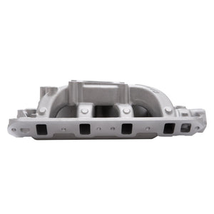 Edelbrock part #7581 RPM Air-Gap 351W intake manifold is designed for street and high performance 351-427 c.i.d. 351W Ford V8 applications. The RPM Air-Gap incorporates the same race-winning design that's been used on our Victor Series competition intakes for decades. The Air-Gap design features an open air space that separates the runners from the hot engine oil resulting in a cooler, denser charge for more power. Larger cross sectional area and a taller carb flange than #7181 for compatibility with large displacement, stroker 351W based engines. Includes bosses for nitrous and rear water crossover. Edelbrock carbs will work with Ford automatic overdrive trans (AOD) when used with Lokar bracket SRK-4000, for more info call (865) 966-2269 or go to www.lokar.com. Installation Instructions Installation Instructions
