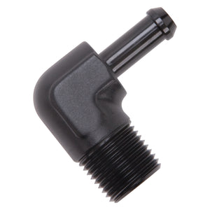 Edelbrock Hose End 90-Deg 1/2In NPT to 3/8In Barb Black Anodize - 8169