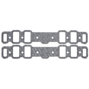 Edelbrock part #7284 Intake Gaskets for 1965-76 400-425-455 Oldsmobile engines allow for optimum flow and performance. Any gasket can create a seal, but a good gasket can do it with less clamping force, and for a longer period of time. The new MP-2N Micropore technology does not use solvents making our gaskets environmentally friendly. Impervious to most chemicals, this synthetic fiber composite provides a high recovery under load. This means that when compressed, the gasket will conform to any imperfections on the sealing surface even using lower flange pressures. A nitrile bead around each port opening makes the seal even better.