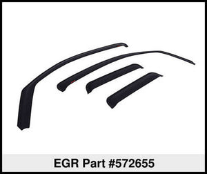 EGR Window Visors are made of a durable, scratch resistant, UV capped acrylic; which will keep your investment from fading, and keep it looking fresh for years to come. With most EGR Window Visors being available in Dark Smoke and Matte Black, customization will never be lacking for the upgrade enthusiast. EGR Window Visors feature an easy, no tools necessary, installation process; whether you choose the classic Tape-on style, or the more modern In-channel style, five minutes or less is all you need! Tape-on Visors utilize a dependable 3M adhesive tape, which will ensure that your EGR Window Visors aren’t going anywhere. All EGR Window Visors come standard with a Limited Lifetime Warranty; meaning that just like our Window Visors, EGR will always be by your side!