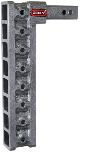 GEN-Y's Mega-Duty Adjustable Drop Hitches start at 10,000 LB towing capacity and go up to 32,000 LB towing capacity. There are multiple drop options as well depending on your trailer towing needs.
