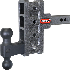 GEN-Y's Mega-Duty Adjustable Drop Hitches start at 10,000 LB towing capacity and go up to 32,000 LB towing capacity. There are multiple drop options as well depending on your trailer towing needs.
