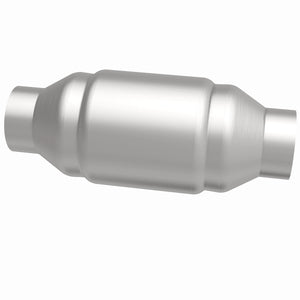 Keep the check engine light off with MagnaFlow Standard Grade Federal/EPA Compliant Universal Catalytic Converter 54955. The Universal design allows the part to fit a wide array of vehicles (cutting and welding required), and the stainless steel construction of this spun body catalytic converter is highly resistant to corrosion. The single laser fusion weld of the spun body greatly reduces the possibility of a leak, and our compact, low-mass design also allows for greater thermal efficiency. This replacement part is designed to meet or exceed Federal emissions requirements set forth by the EPA, complying with legal standards for pre-OBDII Federally registered vehicles.