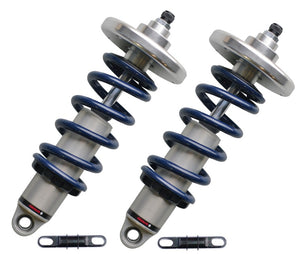 Front HQ Coil-Overs for 1967-1970 Mustang. For use with stock upper arms. Includes a pair of rebound adjustable shocks, springs, spring mounts, delrin spring washers, t-bar and billet adapter.