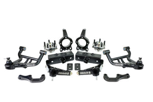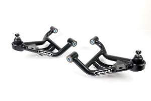 This bolt-in SLA (Short-Long-Arm) suspension system replaces the McPherson strut design with a billet aluminum upper control arm, tubular lower arm and spindles with S-550 Mustang hub's. This design greatly improves negative camber gain and overall suspension geometry. Available with either Ridetech Coil-Overs or Shockwave air suspension. (Sold separately)The factory strut design offers very little camber gain and poor overall geometry. This design incorporates an upper control arm to induce negative camber gain. This positions the tire perpendicular to the pavement through the corners without the need for excessive static camber. Caster, roll center and Ackerman angles were also optimized.The bolt-in frame surrounds create attachment points for the upper control arms and the shocks, this keeps all of the load on the frame rails. The upper and lower arms feature Delrin bushings to minimize stiction. The spindles utilize S550 Mustang hubs to prevent flex and are compatible with S550 or SN-95 Mustang brakes. (Sold separately)Camber gain is 1.25 deg./inch. Positive caster setting from 7-9 degree's. Bumpsteer is nearly eliminated, under .050". Tire clearance improved on lower arm to allow 30 degree’s of steering angle with up to a 275mm wide tire (minimum 17"). This system is compatible with the stock sway bar or most aftermarket sway bars. This system is design for the stock k-member (not compatible with stock 84-86 SVO k-member.)