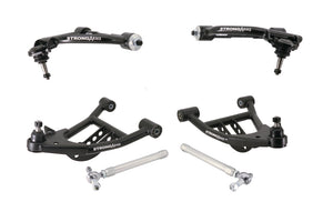 TruTurn system for 1982-2003 S10. For use with Coil-Overs or Shockwaves, sold separately. Includes upper and lower control arms, delrin bushings, ball joints, tie rod ends, adjuster and tie rod studs. Powder coated satin black.