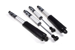 Looking to increase your vehicle's off-road capability by running larger tires? The new Performance Series 2.5-inch Jeep shocks are designed to provide on-road comfort with performance-minded valving for a connected ride with less vehicle sway. How? Consistent and fade-resistant performance due to high-quality materials: 2.5-inch aluminum bodies and race-developed main piston with a true internal floating piston (IFP) to separate gas and oil. The 2.5-inch piston offers a greater force capability by moving more fluid and increasing damping and is less prone to cavitation.The larger diameter valve assembly improves comfort through a wider dynamic range. This allows for a supple feel as velocity increases when transitioning from crawling to fast trail driving: - Tuned specifically for optimum ride and performance on larger plus-size wheel and tire packages.- The same high-quality aluminum bodies and internal floating piston architecture used in our Performance Series 2.0 shocks.- New 2.5-inch diameter shocks have more surface area and increase oil capacity of the shock, allowing for more heat dissipation.- Larger diameter valve shims translate to smoother feel: think firmness without harshness, allowing for a softer tune.- 50% more piston surface area provides less damping fade and more bottom-out control at higher speeds.- Integrated rear roost guard ensures protection of the shaft from stones, mud and other debris.FOX products are built from aluminum, dissipating heat four times better than conventional materials. All FOX shocks are fully serviceable and resistant to corrosion and harsh environments. Tuned specifically for your vehicle’s application. Built-to-last, torture-tested, and race-proven to give a lifetime of great rides.