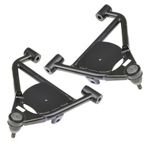 Front lower StrongArms for 1999-2006 Silverado / Sierra 2WD (2007 Classic). For use with CoolRide air springs. Includes a pair of tubular control arms with ball joints, sway bar end links and delrin bushings. Powder coated satin black.