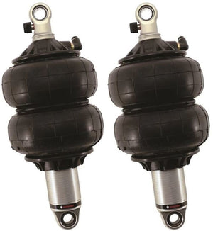 Front HQ Shockwaves, 1000 Series with 3.6" stroke and 1.7" eye. Includes a pair of rebound adj. Shockwaves, 6.5" double convoluted with 1/4" fittings and bearing spacers (1/2" and 5/8"). 10" x 13" with a 11.5"-11.75" ride height.