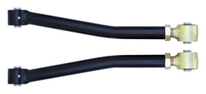 RockJocks Johnny Joint front lower control arms for JK Wrangler and JK Wrangler Unlimited vehicles provide length adjustability allowing pinion angle to be adjusted after the installation of a suspension lift. Additionally the adjustable feature of our arms allows your vehicle to be upgraded to different lift amounts without having to replace the control arms in the future. Arms are fabricated from 1.625 in. o.d. x .250 in. wall DOM steel tubing, feature the 2 1/2 in. Johnny Joint rod end on one end, and the 1 1/4 in. RH thread forged 2 1/2 in. Johnny Joint and jam nut on the other end for maximum articulation. Arms are finished in semi-gloss black powder coat and the forged ends are finished in gold zinc plating.