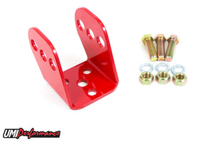 This new replacement rear control arm mount replaces the stock control arm mount that attaches the rear upper control arm to the vehicle chassis. This item works excellent when the factory mount is too rusted to re-use or when installing a 12-bolt 4-link set-up into a 3-link equipped vehicle. Replacement bracket is CNC machined from 0.188” thick steel plate, precision bent and supplied with a bright red or gloss black powder coat. Item includes new grade 8 hardware to complete installation. This mount also features instant center adjustment by lowering or raising the upper control arm. The center hole supplied in the bracket represents the factory location.