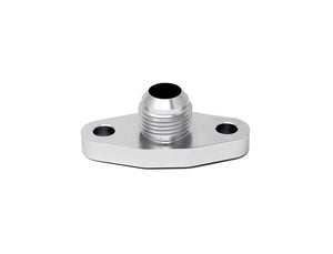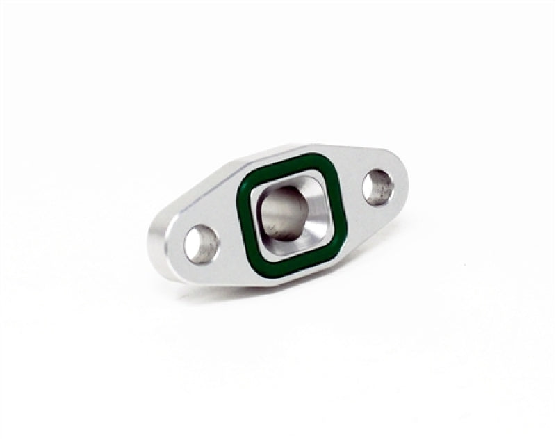 Torque Solution Port Matched Oil Drain Flange is made from CNC 6061 billet aluminum and integrated with a 10AN flare fitting. Our flange incorporates a recess with a high temp FKM rubber o-ring gasket for a leak proof seal.