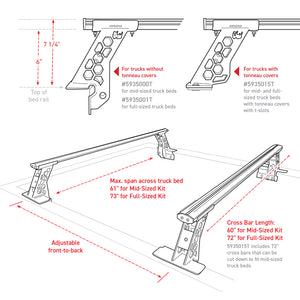 Go Rhino’s XRS Cross Bars allow you to mount a rooftop tent on your truck while preserving the utility and capacity of your factory truck bed. The corner uprights elevate and support the 4-CORE cross bars approximately six inches above the factory bed cap, which provides for unobstructed access to the truck bed. Mounted tents and cargo boxes will sit below the roof of the cab, which reduce wind resistance. Each 4-CORE cross bar works with standard ¼-20 hex head bolts which allows unlimited mounting options for gear, trail tools and all your toys. Installation is easy with no drilling or cutting required. XRS Cross Bars come with a Limited Lifetime warranty on materials and construction and a 5 year warranty on the Textured Black Finish. Installation Instructions