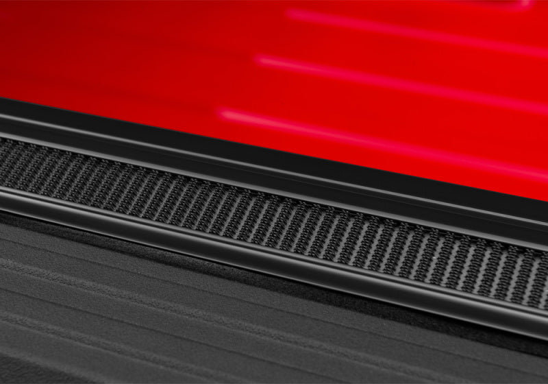 The all-new Sentry by TruXedo combines all the same great features of the Sentry CT but with an industrial-strength, leather-grain vinyl fabric. This hard roll-up truck bed cover features an Xtra-low profile. We have pressure bonded the vinyl fabric to heavy-duty aluminum slats making Sentry the ultimate in durability and security. When rolled up tightly at the cab, the cover provides full bed access without blocking rear view visibility or the third brake light. When closed, the Sentry?s flush mount profile delivers a sleek look that is sure to impress! An extra security latch is located towards the center of the cover for enhanced protection so you can rest in the fact that your cargo is safe and sound. Installation is quick and easy and does not require the use of special tools or drilling. The Sentry is made in the USA and comes backed by a 3-year warranty.