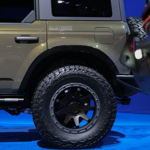 2021-2023 Ford Bronco 4-Door flared rear quarter kit, hand-laid in the USA. Price includes set of two rear quarter panels (driver and passenger side), door caps (driver and passenger side), and rear bumper caps (driver and passenger side). Fiberglass kit comes standard in semi-gloss white. Bolt-on installation.