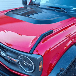 Our aftermarket Ford Hood for 2021-2022 Ford Broncos are handcrafted right here in America to ensure the kind of quality, durability, and craftsmanship you’ve come to expect from Advanced Fiberglass Concepts. Each Bronco fiberglass hood is made specifically for your model and year and designed for a seamless transition between the factory panels and our aftermarket body panels. This Bronco hood are is perfect match with our 2021 Ford Bronco Sasquatch Flares . Carbon Finish Options are in the vent section only.