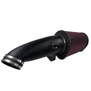We swapped the location of the air intake and battery, allowing our intake to not only be closer but also directly in line with the front air inlet. Additionally, our intake tube has minimal bends as it connects to the turbo inlet. These details result in a significant decrease in restriction compared to the stock intake.
