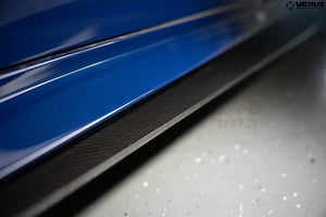 The Verus Engineering Carbon Polyweave Side Splitter Kit completes the aerodynamic appearance of your Corvette Stingray. These units were designed specifically to flow with the factory side-splitter and feature a horizontal member that reduces the amount of high-pressure air making its way to the bottom side of the vehicle. This high-pressure air produces lift, and by reducing this, we reduce lift on the chassis, therefore increasing downforce. This is specifically prevalent while the vehicle is in yaw or while turning.