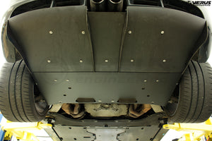 Finishing what Porsche started, we fill in the void in the 987's underbody. The middle of the vehicle creates drag on automobiles and covering the turbulent areas with flat sheet aluminum reduces this significantly. By feeding the rear diffuser less turbulent air, we are able to increase the diffuser's ability to create downforce as well.