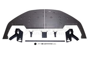 The splitter is produced from a carbon thermoplastic, which is the same material used in high forms of Motorsports. The material is not brittle, so no more issues with cracking like carbon fiber and ABS. It will not grab and bend under the car like aluminum units either. It is a great splitter material that abrades and takes a beating without reducing performance or appeal.
