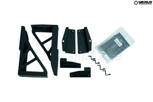 The splitter is produced from a carbon thermoplastic, which is the same material used in high forms of Motorsports. The material is not brittle, so no more issues with cracking like carbon fiber and ABS. It will not grab and bend under the car like aluminum units either. It is a great splitter material.
