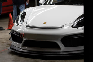 Front splitters are very effective at producing front end downforce without increasing drag significantly. They do this by creating a large pressure delta between the top and bottom surfaces. We then incrementally improved the front splitter by adding design tweaks to the underside of the splitter to improve flow with our carbon splitter diffusers.