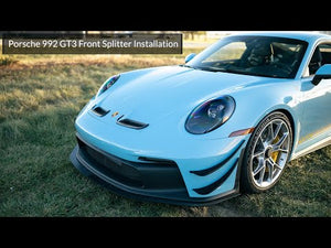 Front splitters are very effective at producing front end downforce without increasing drag significantly. They do this by creating a large pressure delta or difference between the top and bottom surfaces. We then incrementally improved the front splitter by adding design tweaks to the underside of the splitter to improve flow with our carbon polyweave splitter blades. While running CFD we ensure we have an appropriate aero balance for the vehicle to ensure good on-track performance. The splitter installs with absolutely no cutting or permanent modification to your Porsche!