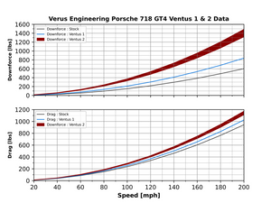 The Ventus 2 package provides a substantial increase in downforce with a small drag penalty over the Ventus 1 kit. The Ventus 2 kit also improves the total aerodynamic efficiency (Lift/Drag) compared to OEM and Ventus 1. This next-level performance package gives the user impressive aerodynamic balance while maintaining the balance of their factory warranty.
