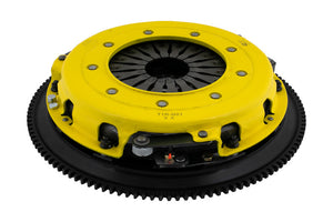 T1R-N01 twin disc kit offers twice the number of disc surfaces for better wear, heat capacity and long life compared to single disc kits. These kits use a proprietary Positive Lift Floater System design, which results in quiet operation with no floater rattle and no posts to wear. ACT twin disc kits endure an exclusive four-stage, heat treating process performed on all diaphragms. The ACT twin disc features the ability to adjust for disc wear and provides equal disengagement for discs. ACT's 6-pad rigid race discs are made with high quality, ceramic friction materials. The chrome-moly hub is heat-treated for strength and durability. The lightweight, rigid design allows for quicker shifts and trouble-free service. All ACT twin disc kits include a CNC-machined and dynamically balanced flywheel to ensure trouble-free installation and operation. ACT twin disc kits include a pressure plate, two discs, a floater, flywheel and alignment tool. Some kits may include a pilot bearing and release bearing.