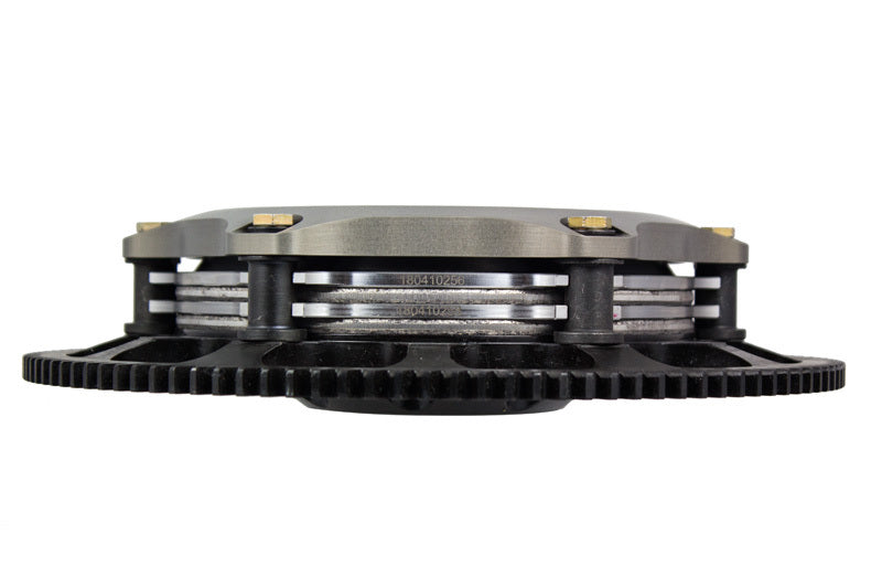 T1RR-H02 race, twin disc kits are race-ready for the serious enthusiast who needs a direct bolt-in kit, requiring no additional modifications. ACT's sintered iron race discs offer the highest torque capacity of all ACT race discs and have ultra-high heat capacity. Most kits offer pedal loads 10-20% higher than stock, yet increasing the clamp load by 80-90%. All ACT twin disc kits include a CNC-machined and dynamically balanced flywheel for trouble free use. All kits undergo an exclusive four-stage, heat-treating process on all diaphragms. ACT twin disc kits include a pressure plate, two discs, floater, flywheel and alignment tool. Some kits may include a pilot bearing and release bearing. ACT Twin disc kits meet SFI Specification 1.2.