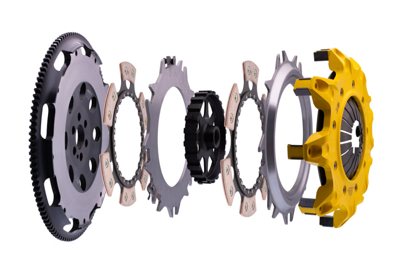 T1R-N06 Mod-Twin 225 HD Rigid Race Kit tackles aggressive launches and rapid shifting of high powered AWD’s by combining twice the ceramic friction surfaces with a no-nonsense solid Mono-Drive hub in a completely modular design. Each diaphragm spring endures an exclusive four-stage heat treating process providing a consistent light pedal feel. Puck-style Friction Plates with high quality ceramic friction materials deliver high friction coefficient, superior heat capacity, and long clutch life. These Friction Plates uniformly transfer torque to a Mono-Drive chrome-moly hub which is heat treated for strength and durability extending input shaft life with one continuous spline. The lightweight, rigid design allows for quicker shifts and trouble-free service. This kit includes a CNC-machined and dynamically balanced flywheel, pressure plate cover, diaphragm spring, face, puck-style ceramic friction plates, rigid Mono-Drive hub, floater, patented Monoloc Collar, release bearing, alignment tool and pilot bearing (if needed). Mod-Twin clutches are fully rebuildable and most components can be ordered separately. Warranty