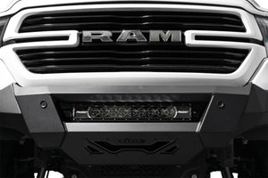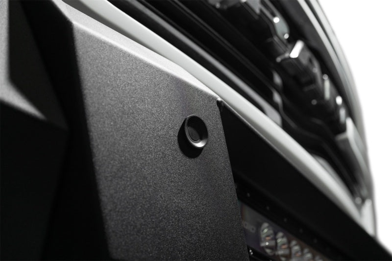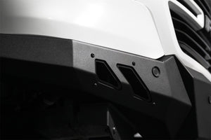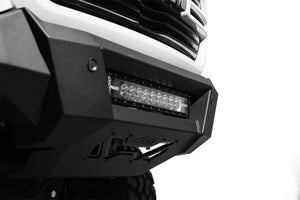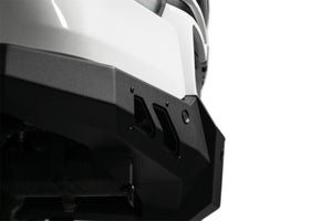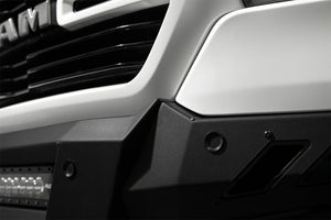 Our front bumper features a low-profile design and tight fitment. The center mount is compatible with one 20-inch LED light bar. The bumper is finished in a 2-stage hammer black powder coat, and it features satin black accent panels. The OEM parking sensors are retained. The bumper is made from steel, and it is fully bolt-on. Made in the USA. * Please Note: The bumper is not compatible with the TRX trim level.