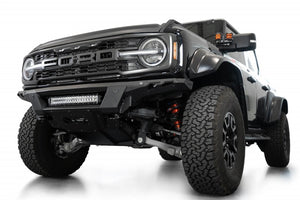 The Phantom Series Front Bumper was engineered with a low-profile, knife's edge design, giving your rig an even more aggressive stance than factory. At the center of the bumper is an inset mounting point for a 20-inch Radius LED Light Bar. Alternatively, (5) 3-inch Light Pods can be mounted at this same location. We include a heavy duty 3/16-inch aluminum front skid plate, which replaces the incompatible factory skid. The skid plate and accent panels are finished in a satin black powder coat, while the bumper is finished in a durable hammer black powder coat. The Phantom retains OEM features such as the parking sensors & adaptive cruise control (ACC Relocation Bracket is required.) Provisions for adding frame mounted recovery points are included in the design. As always, this is fully bolt-on and Made in America.